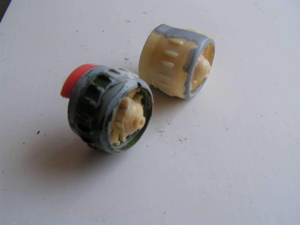 - Motorul şi capotajul care îl acoperă - Defect datorat neînchiderii corecte a matriţei, precum şi scoaterii premature a piesei, nepolimerizată suficient. Capotajul era turtit dorso-ventral şi cu detaliile nereliefate. Motorul prezeta între cilindrii bucăţi de cauciuc siliconic, smulse la dematriţare, probabil datorită lubrifierii defectuase a cauciucului, prealabil turnării.